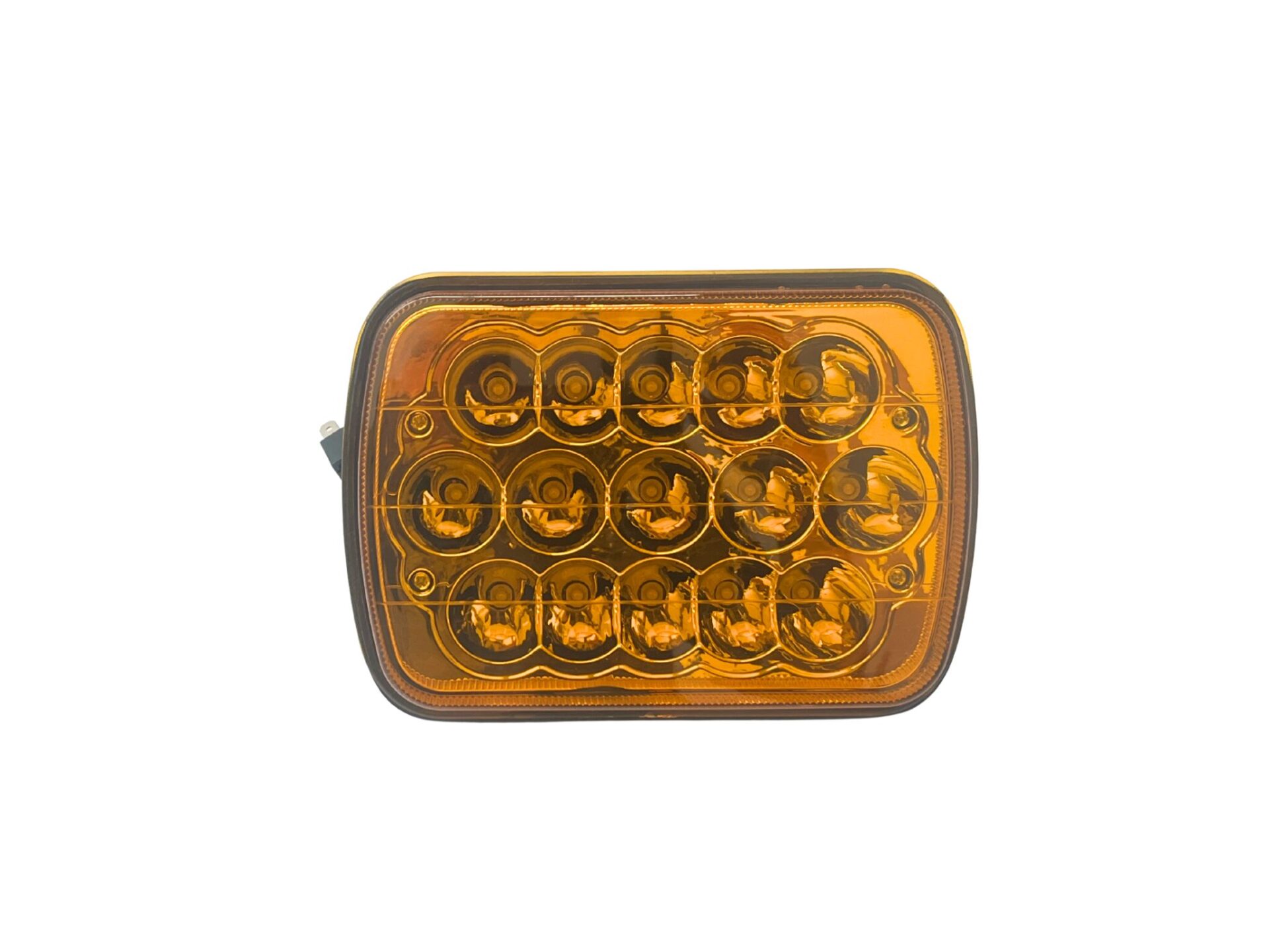 Luz exploradora tipo H4 de 8 pulgadas, equipada con 15 LEDs y potencia de 45W. Compatible con sistemas 12V y 24V (bivolt). Emite luz amarilla ideal para mejor visibilidad en lluvia o neblina. Dimensiones aproximadas de 13×18 cm, diseñada para instalación en vehículos de trabajo o uso off-road.