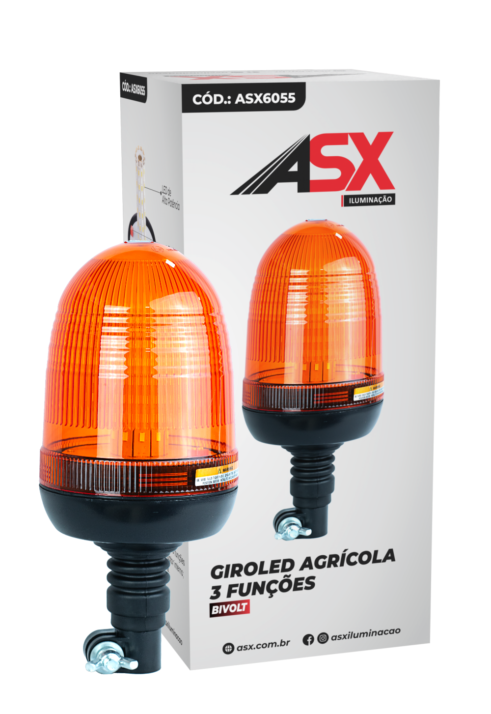 Luz tipo licuadora agrícola con 60 LED color ámbar. Alta visibilidad para maquinaria.