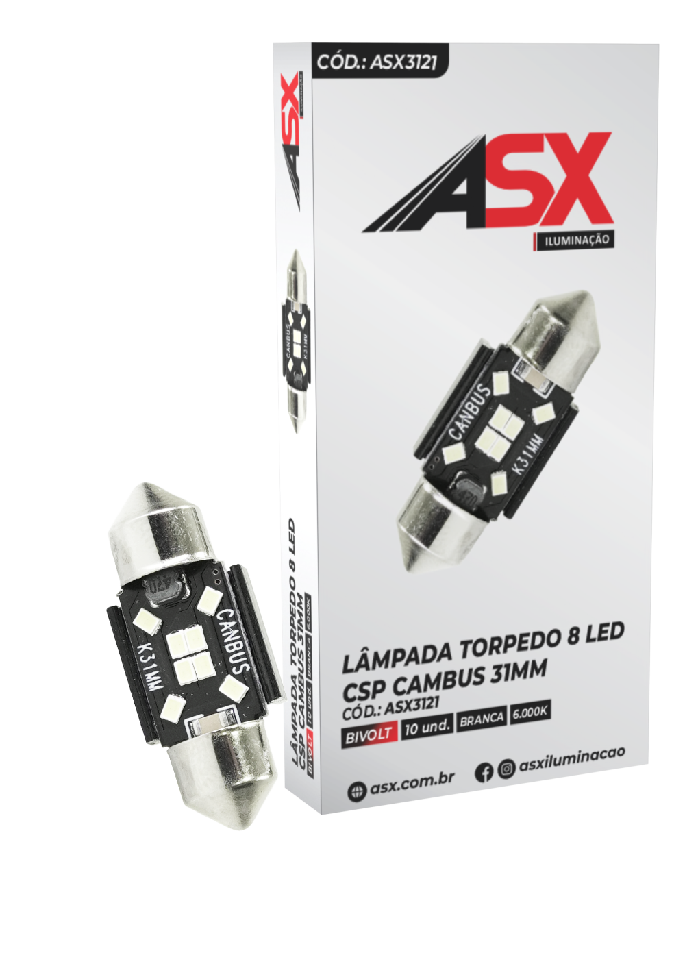 Bombillo torpedo 31mm con 8 LED CSP y sistema CANBUS. Compatible 12V–24V.