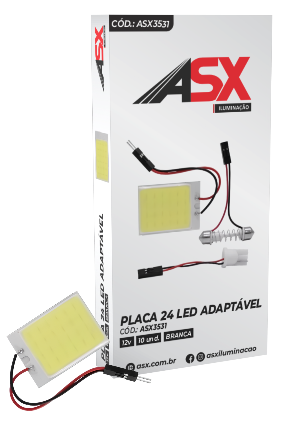 Placa LED adaptable para luz interior, 12V. Medidas 3.5×2.5 cm, iluminación blanca uniforme.