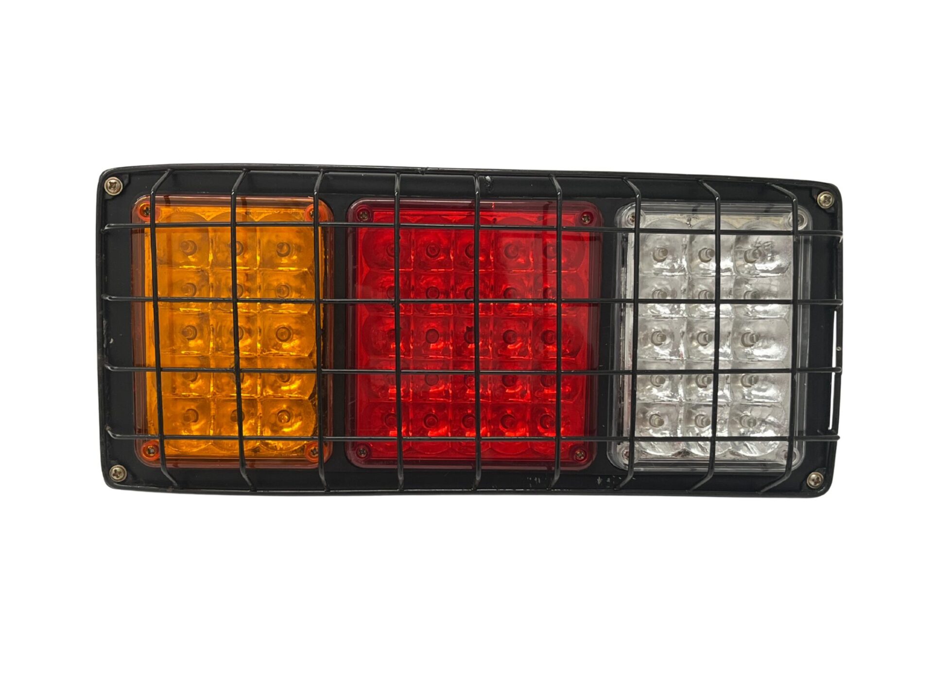 Stop LED multifuncional compatible con sistema 24V. Incorpora malla protectora que brinda mayor resistencia y protección frente a impactos. Diseñado para señalización trasera en vehículos de transporte o carga pesada, ofreciendo alta visibilidad y bajo consumo.