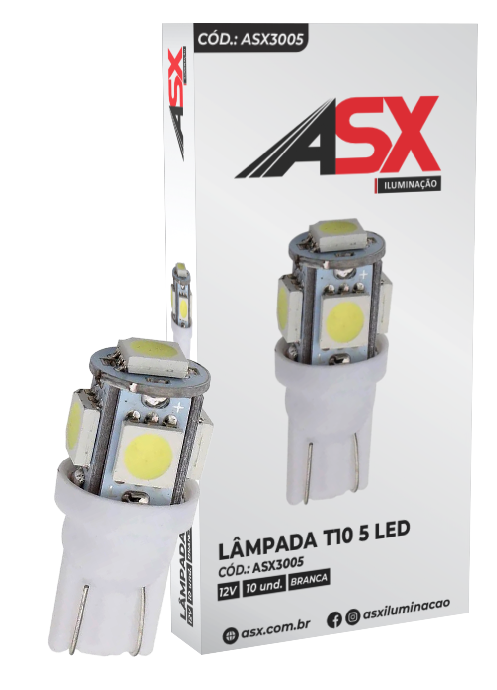 Bombillo T10 12V con 5 LED 5050, luz blanca intensa.