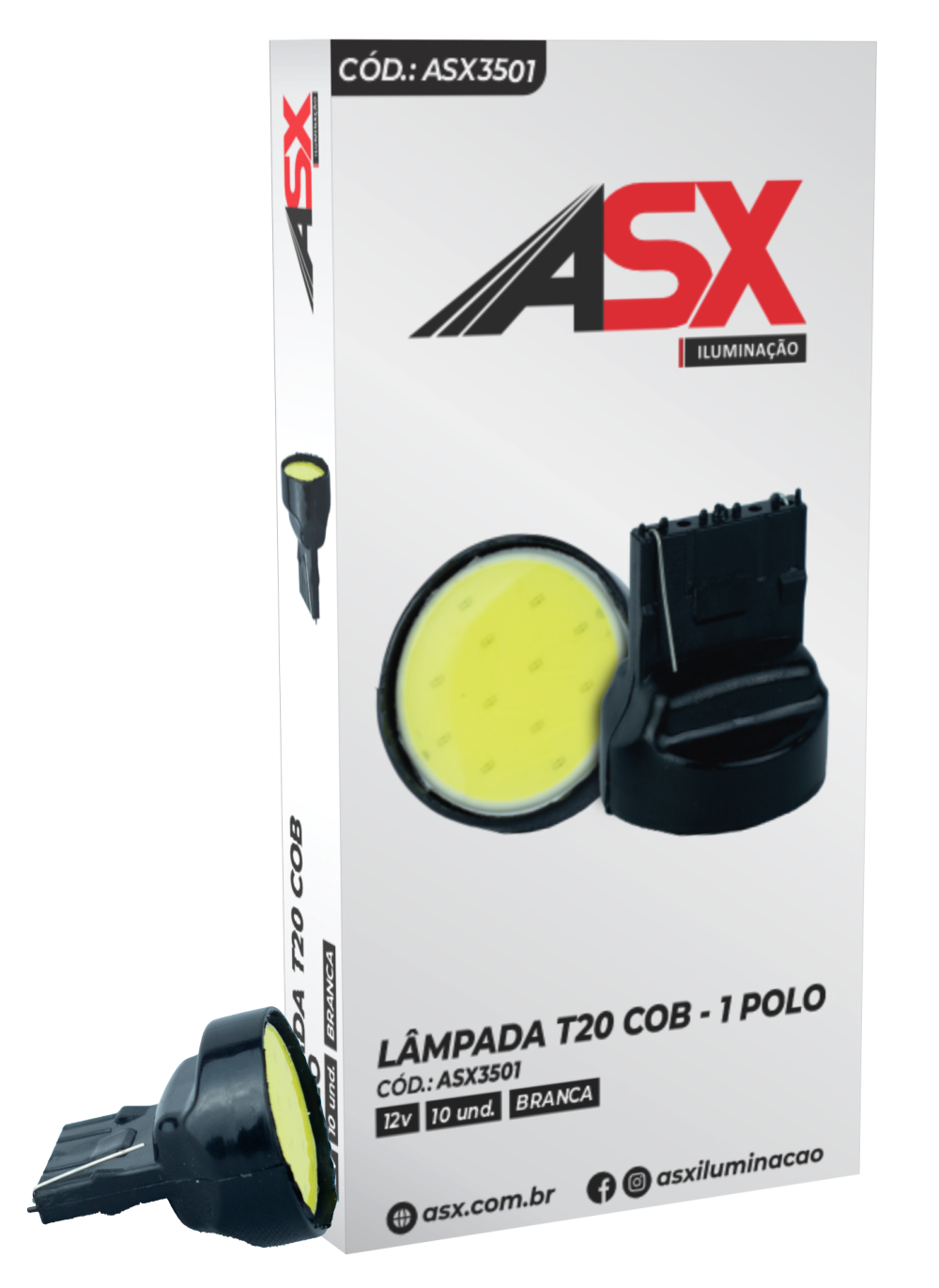 Bombillo T20 2443 12V 1 polo LED COB, luz blanca intensa.