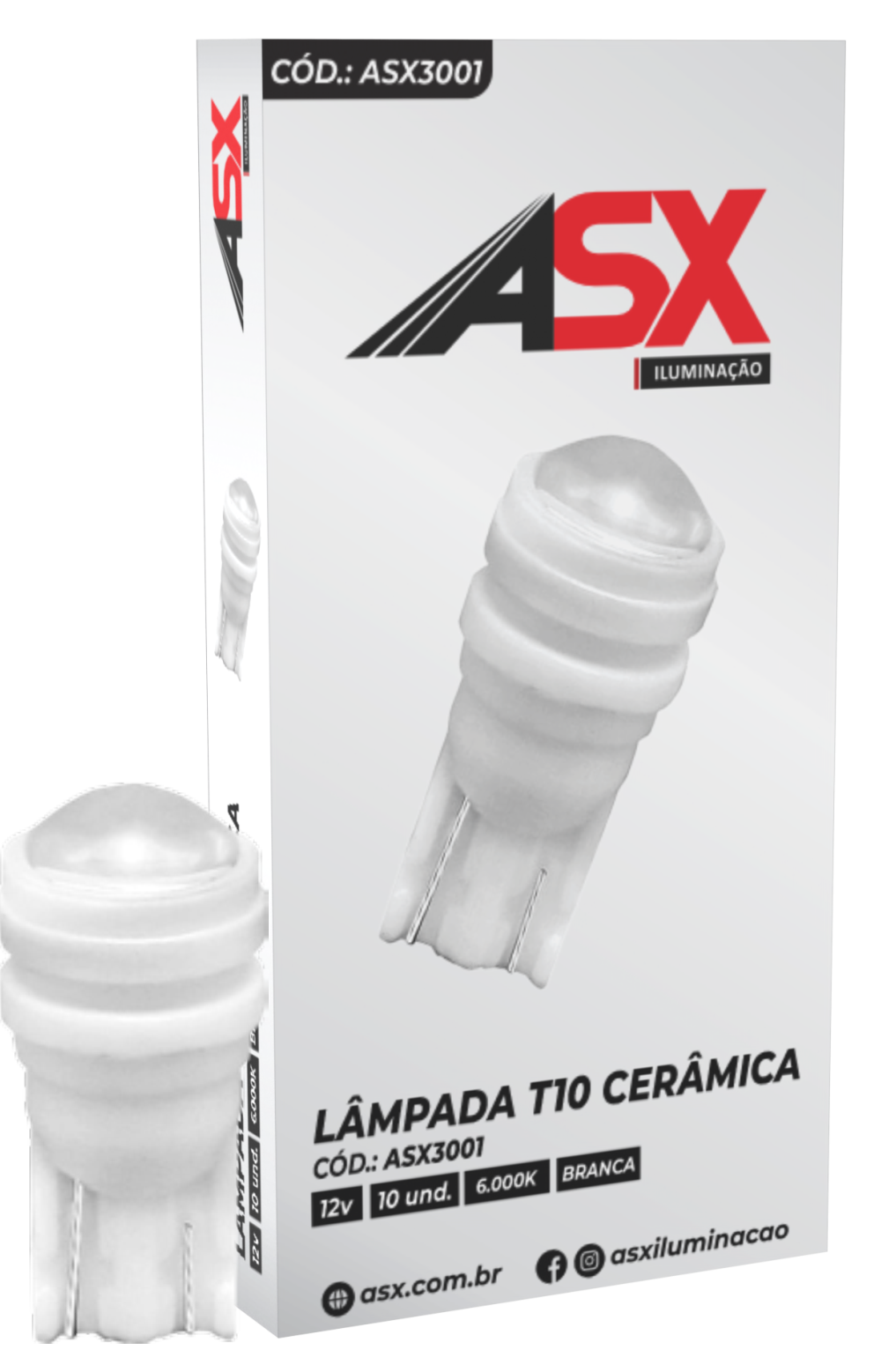 Bombillo T10 12V base cerámica, luz blanca fría 6000K. Mayor claridad y duración.