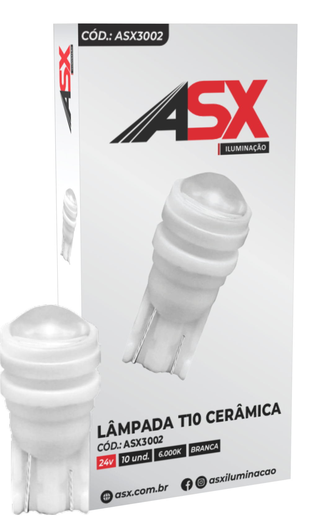 Bombillo T10 24V base cerámica, luz blanca 6000K para transporte pesado.